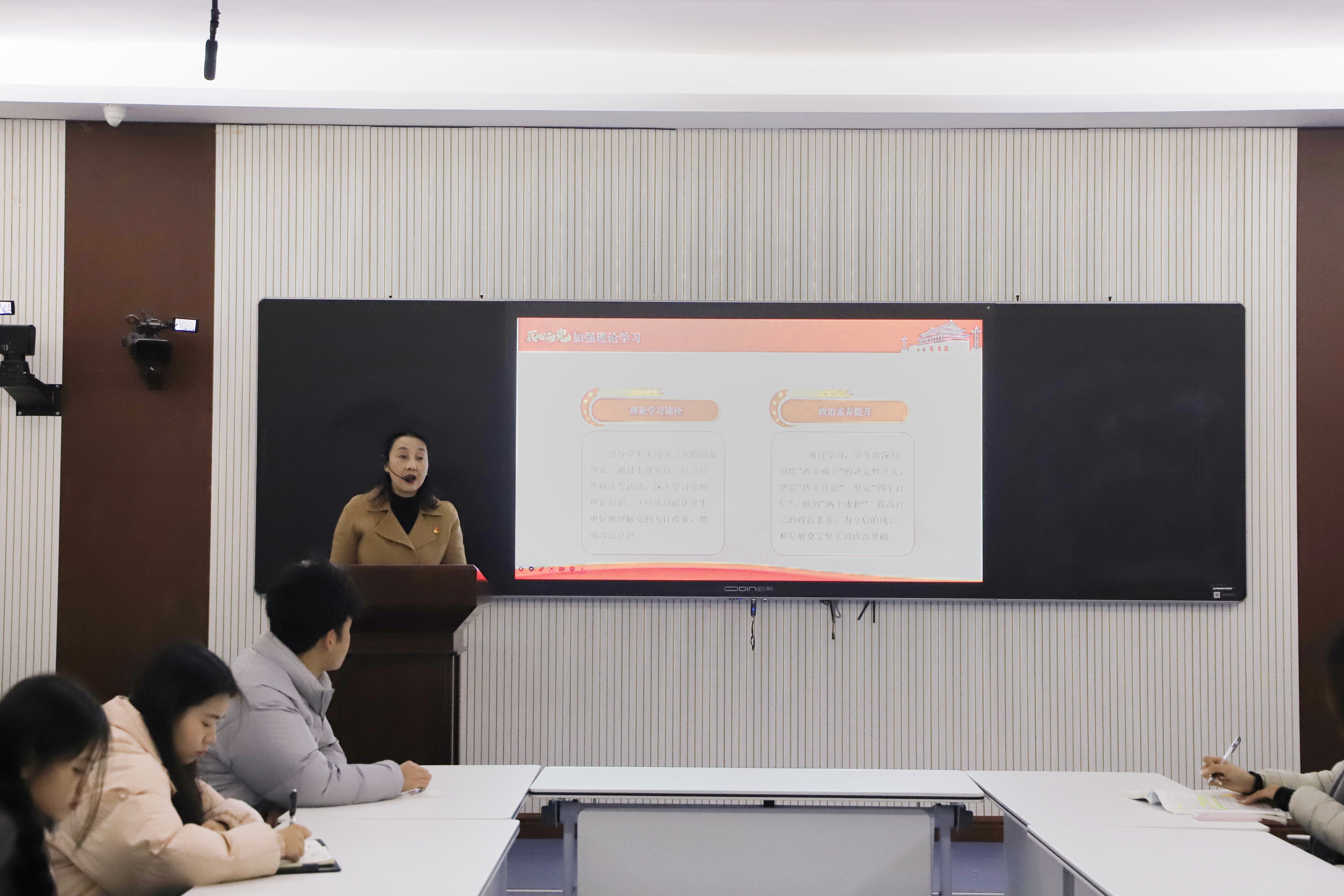 党课伊始,叶桦书记立足时代坐标,阐述了党的二十届四中全会召开的重大意义。她讲到医学检验技术、卫生检验与检疫技术专业的学生,作为未来公共卫生防线的“侦察兵”和“把关人”,必须深刻领会全会精神,勇担时代赋予的专业使命。