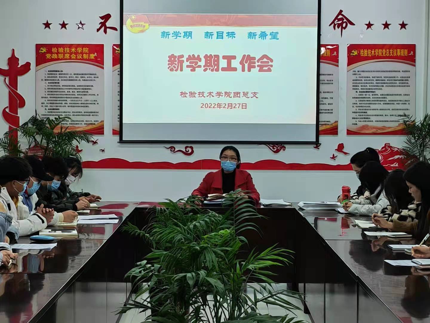 会上,孟书记首先对2021年团总支工作进行了汇报,对2022年上半年新学期团总支在组织建设、制度建设、教育管理、团员帮扶等方面进行了部署,鼓励团员们努力成为德智体美劳全面发展的新时代青年。