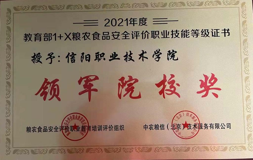 2020年买球官网卫检专业先后获批河南省“1+X”粮农食品安全职业技能等级证书第三批试点专业和证书考核基地,成为全国卫检专业中首个获批该“1+X”证书试点专业和证书考核基地的院校,于2020、2021年年度考核中被评为优秀组织奖和领军院校奖。