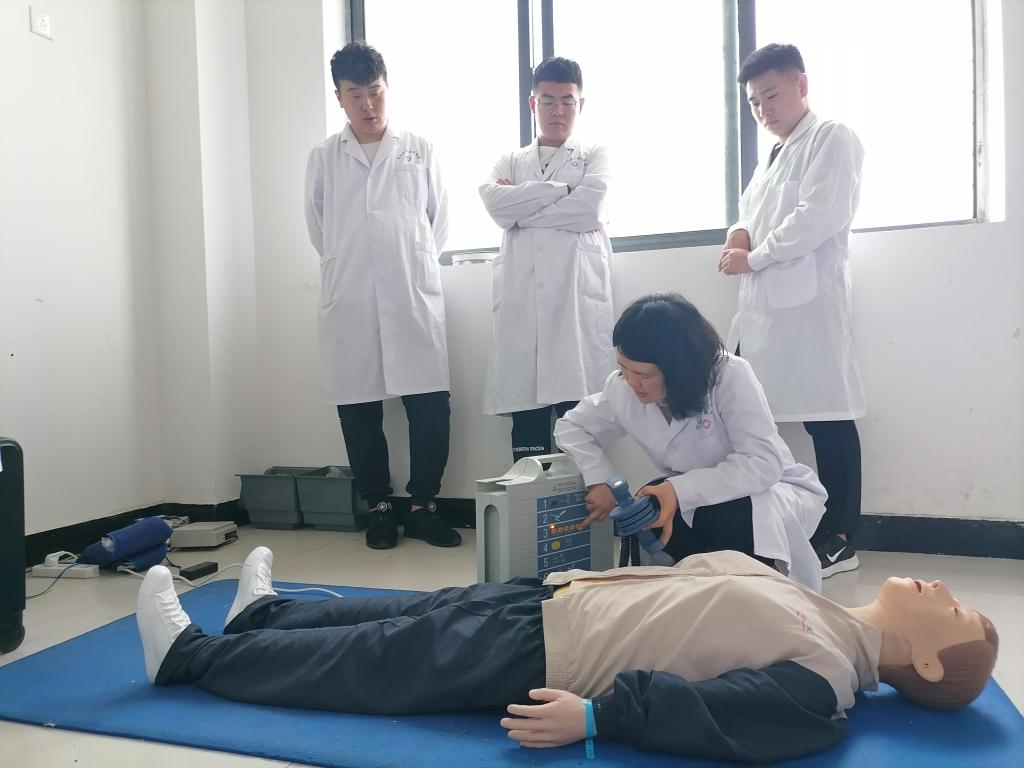 康老师为同学们详细地讲解心肺复苏的要点,按压的位置频率节律深度等,并为同学们示范了自动除颤仪的使用方法,并结合自身工作经历,分享心得体会。