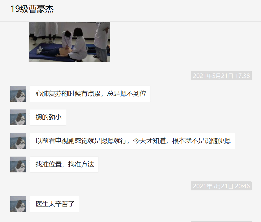 2019级卫检班学习委员曹豪杰同学表示,通过此次学习,知道了心肺复苏的适应症,对院外急救有了系统了解,以后在面对意外情况时,学会冷静的思考,按照指南步骤完成心肺复苏的操作,做一个合格的医务工作者。