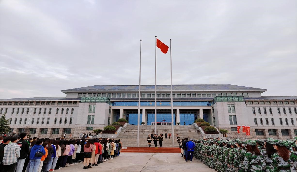 参加升旗仪式的全体人员庄严肃穆,整齐列队。6:58分学校国旗护卫队迈着整齐的步伐走向升旗台,7:00整伴随着雄壮的《义勇军进行曲》,鲜艳的五星红旗冉冉升起,全院师生面向国旗行注目礼,表达对祖国的无限忠诚与热爱。