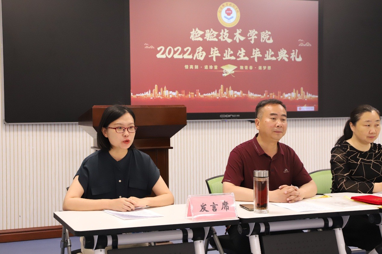 最后,学院党总支书记王虹讲话,王书记要求全体毕业生一要终身学习,二要永怀感恩,三要珍惜时间,四要珍惜友情。带上“检以求真,验以求实”的检验精神勇敢地走出去,把吃苦耐劳、砥砺奋进作为青春的“必修课”,勇于坚持、勇挑重担、勇克难关,以青春奋斗实现精彩人生!