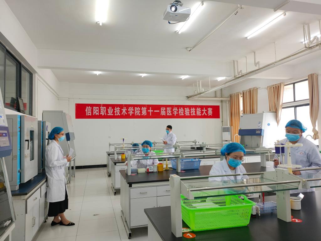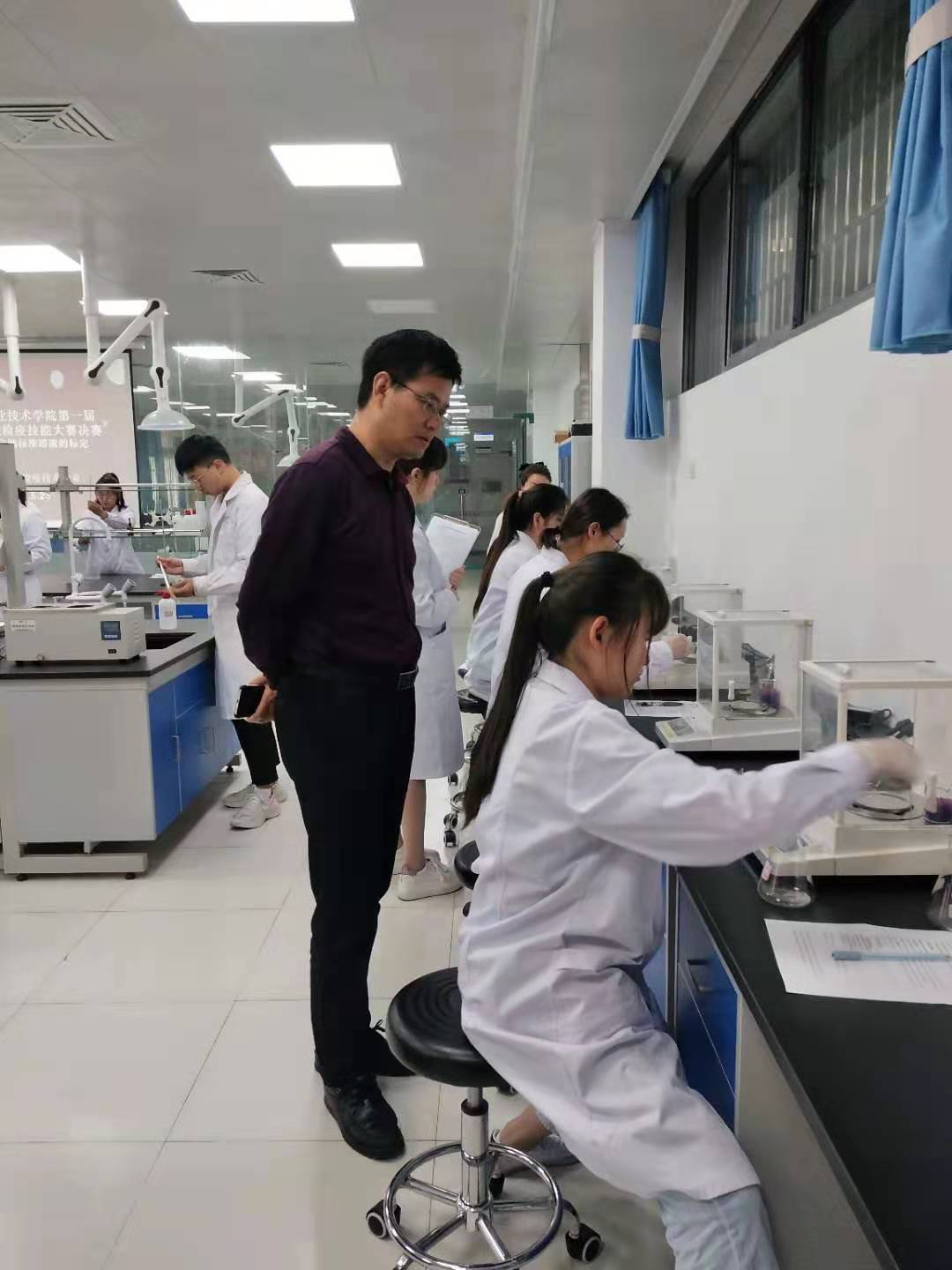 5月25日下午,买球体育官方网站医学检验技术专业、卫生检验与检疫技术专业分别在实训楼6409、7206实验室开展了专业技能大赛决赛。教务处副处长任传忠到现场指导,买球体育官方网站院长陶玲、副院长张永海、免疫学检验教研中心老师、卫生检验检疫教研中心老师及25名选手参加此次竞赛。