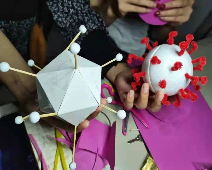 学生是教师最大的财富。此次大赛得到了买球官网2020级“求实社”各位同学的鼎力支持。他们不仅全程参与了课程录制,还同老师一起克服重重困难,加班加点打磨课程,并亲手制作了许多课程中需要用到的病毒及细胞模型为比赛助力。比赛过程中,教师用自己努力拼搏的精神感染了学生,学生通过自身的积极参与回馈了教师,实现了双方的“共赢”。