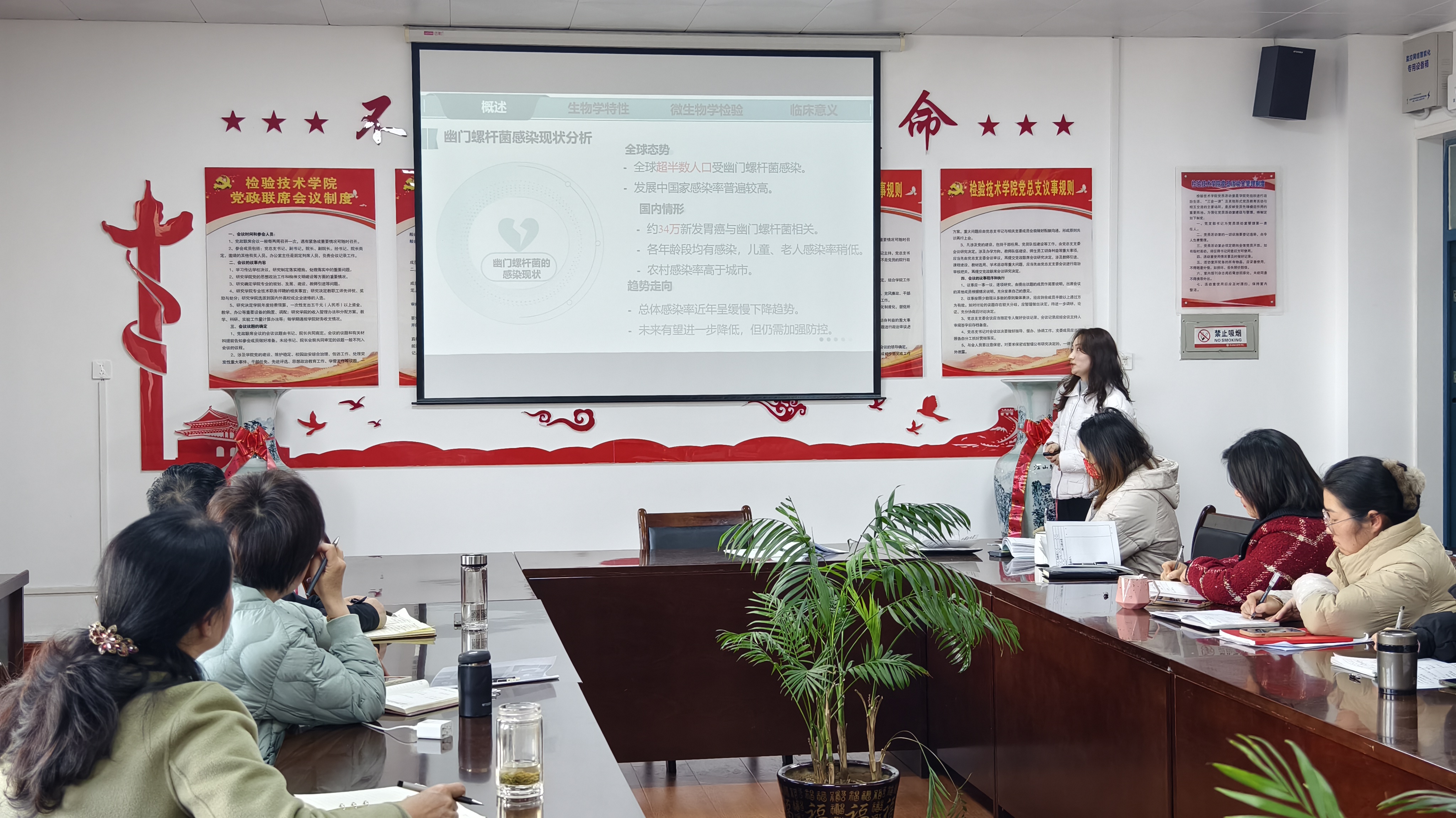 李举博士从电焊工人从事电焊作业为例进行课程导入,通过生产中实例介绍职业损害的三级预防,并归纳总结它们的区别和联系。李滟镕老师从呼气试验引入,结合生活实例从生物学特性、传播途径、致病性及症状表现等方面介绍幽门螺杆菌。