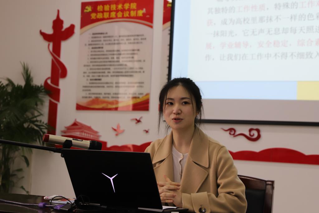 为了促进学生工作品牌建设,加强教师、辅导员、班主任之间的交流,形成全员育人的工作氛围。3月16日下午3点,买球体育官方网站在9412会议室举办了学生工作经验交流会,学院党总支书记殷来宾、院长陶玲、全体教师参加了交流会,会议由党总支副书记许葵元主持。