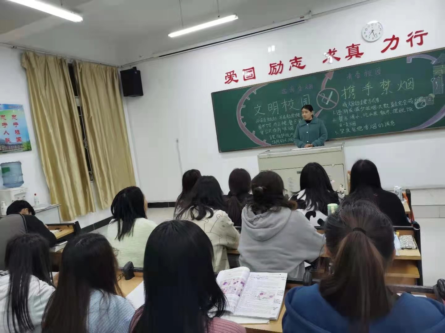 为了建设无烟校园,买球官网3月24日晚自习开展了以“文明校园,携手禁烟”为主题的班会。建设无烟校园是学校精神文明建设、校园文化建设和清洁校园的需要,是促进全校师生身体健康的需要,为给师生创造一个健康、文明、和谐、优美的校园。