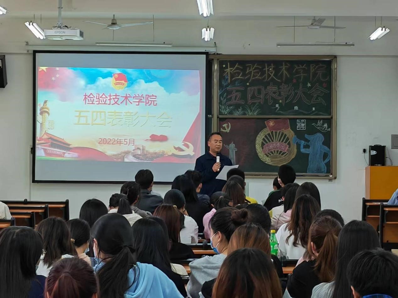 在雄壮的国歌声中,表彰大会开幕,团总支书记孟丹丹宣读2022年度五四评优表彰决定。此次表彰共评选出4个优秀团支部,优秀团学干部近40名,在喜迎党的二十大暨河南省科技文化艺术节线上展演节目选拔、歌唱青春暨庆祝建团100周年文艺汇演等活动中,共评选出105名优秀表演者。