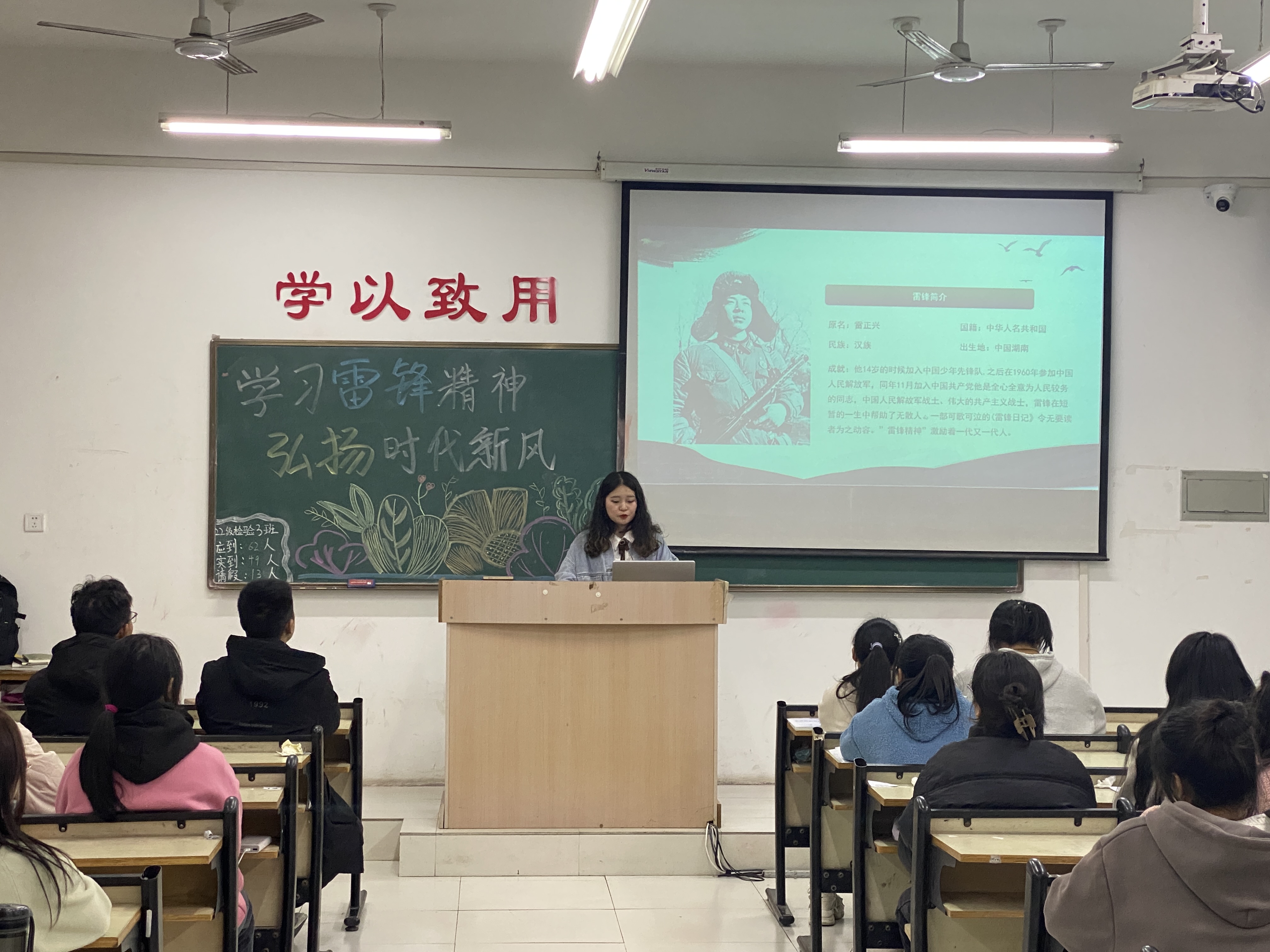 各班团支部领学了习近平总书记关于志愿服务的系列重要批示精神,观看了雷锋同志的生平事迹,真正了解了雷锋精神的时代内涵,各支部纷纷表示共同将雷锋精神转化为“微行动”,以自身言行影响身边的人,关爱同学,规范行为,于日常细微中进一步践行雷锋精神。