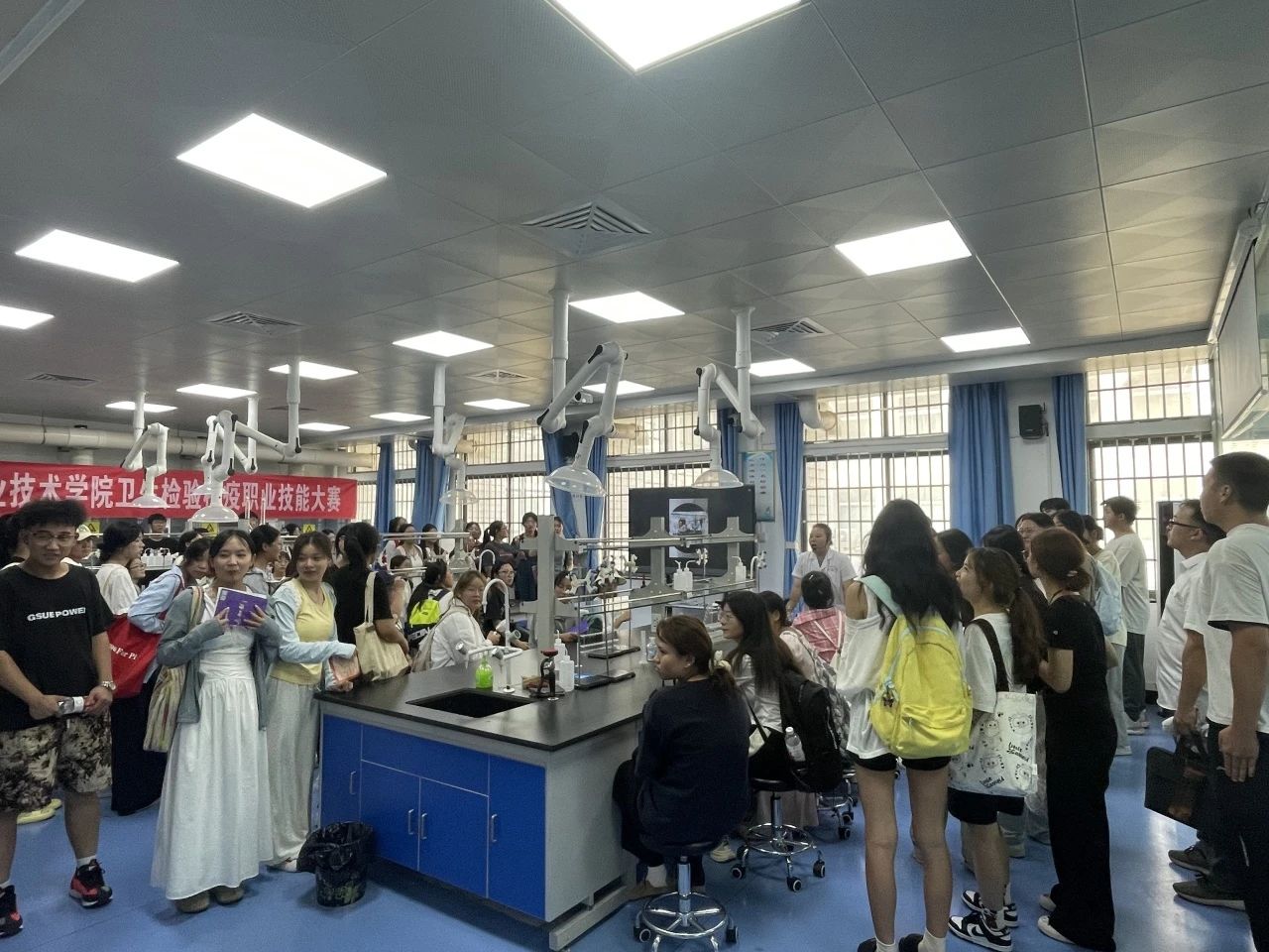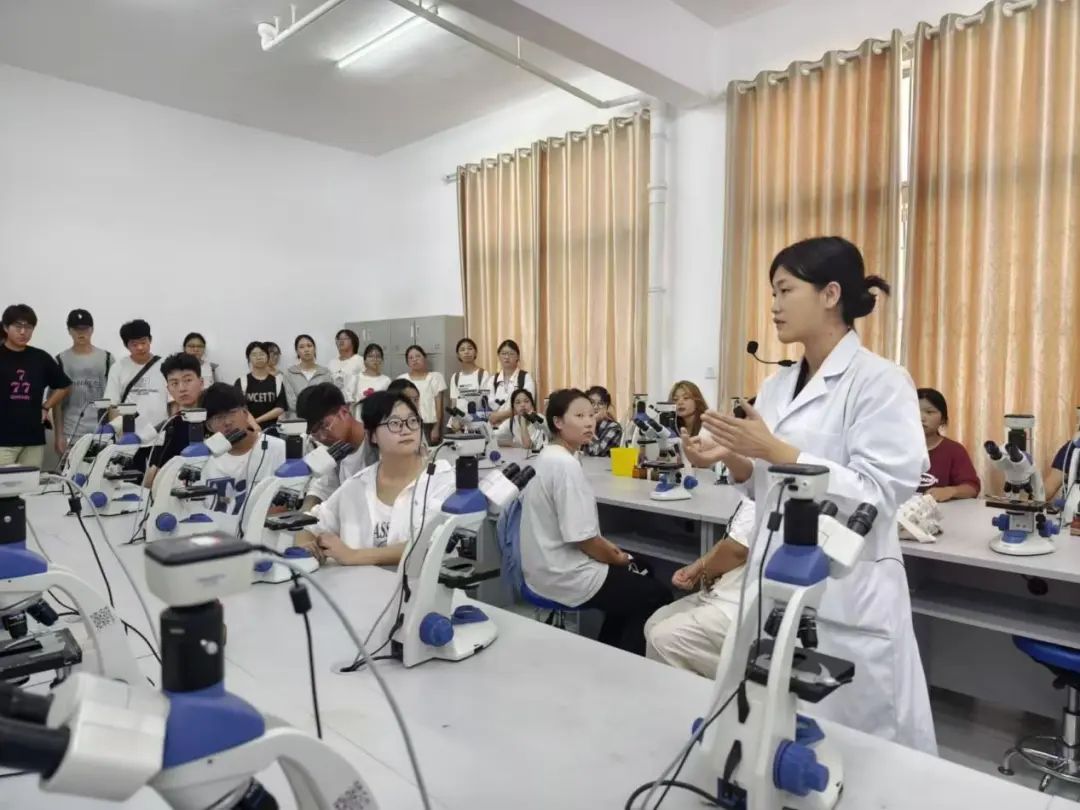 同学们先后进入医学检验及卫生检验与检疫技术综合实训室、虚拟仿真实训室、临床检验、生化检验、免疫学检验、微生物检验、形态互动等实训室进行参观,每个实训室均有老师负责讲解实训室的功能与特点、大型实训仪器、开设的实训项目及行业发展趋势,并就新生关注的问题进行了互动。