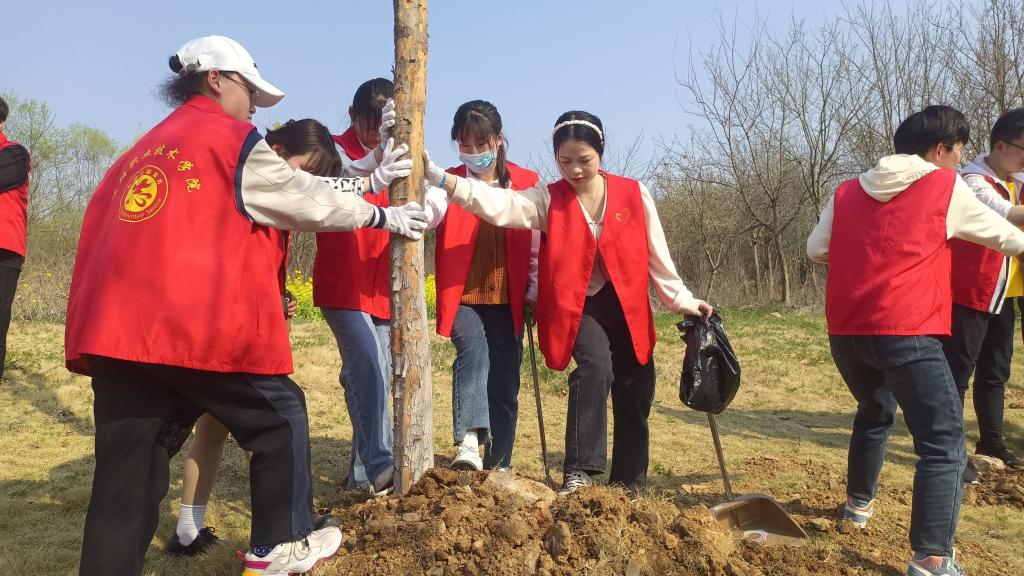 又是一年桃红柳绿时,为美化校园环境,进一步增强全体师生的环保意识,牢固树立“绿水青山就是金山银山”理念,坚定不移走“生态优先、绿色发展”之路。3月11日下午,买球体育官方网站教工党支部、学生党支部、团总支组织师生党员、积极分子、青年志愿者一同参与植树活动。