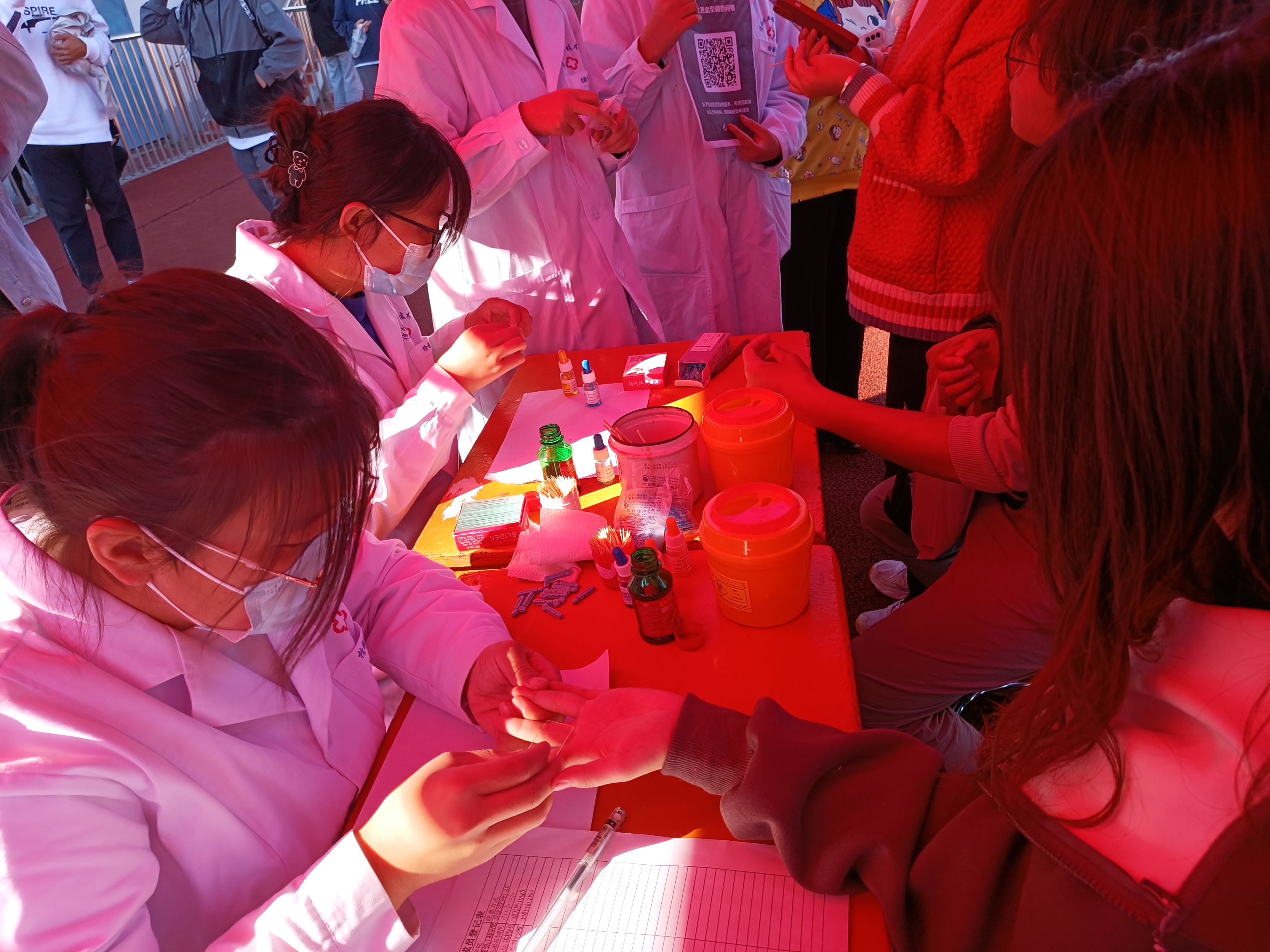 活动刚开始,小小的检测桌前便挤满了前来测血型的同学,求实社社员用娴熟的手法完成血型检测并向同学们宣传无偿献血知识,针对同学提出的疑问,社员耐心讲解。听了社员们的答疑解惑,同学们既知晓了自己的血型,还了解了无偿献血的知识,并表示愿意奉献爱心,无偿捐献血液。