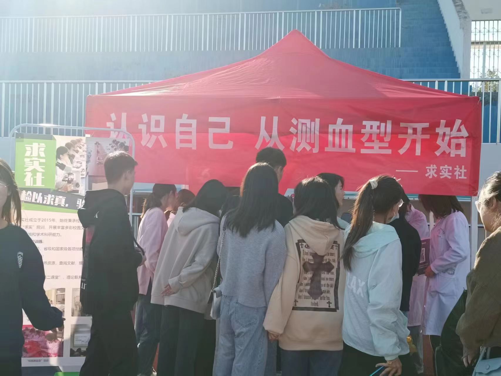为丰富社团文化活动,促进社员全面发展,求实社于10月11日下午3点在西操场参加了买球体育官方网站社团嘉年华活动,并在12号场地开展社团宣传及义务测血型活动。
