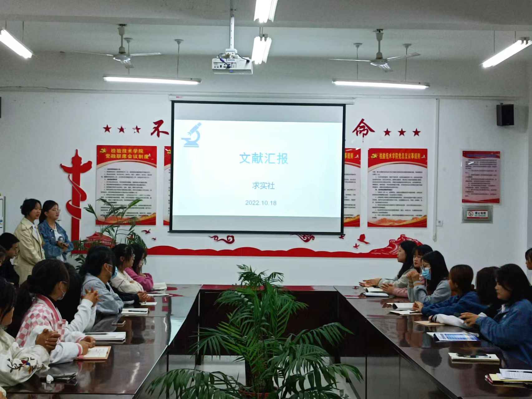 为了提升社员的文献检索能力,提高社员的语言表达能力,求实社于2022年10月18日晚自习在9412会议室举行文献汇报活动,参加本次文献汇报的有求实社指导老师曹琳、朱兆宇和全体社员。