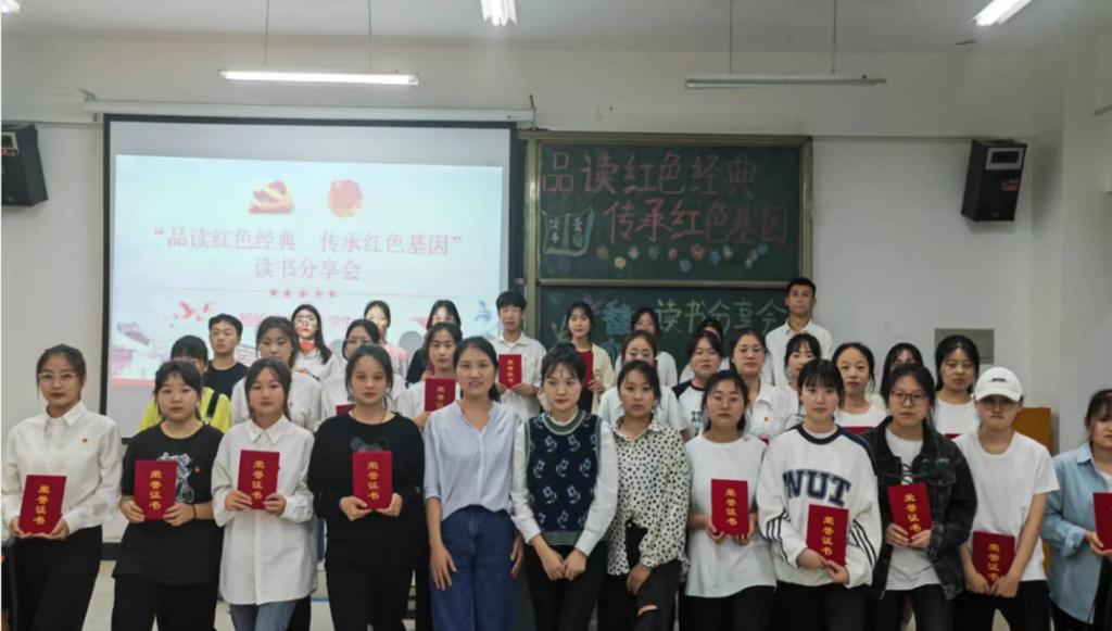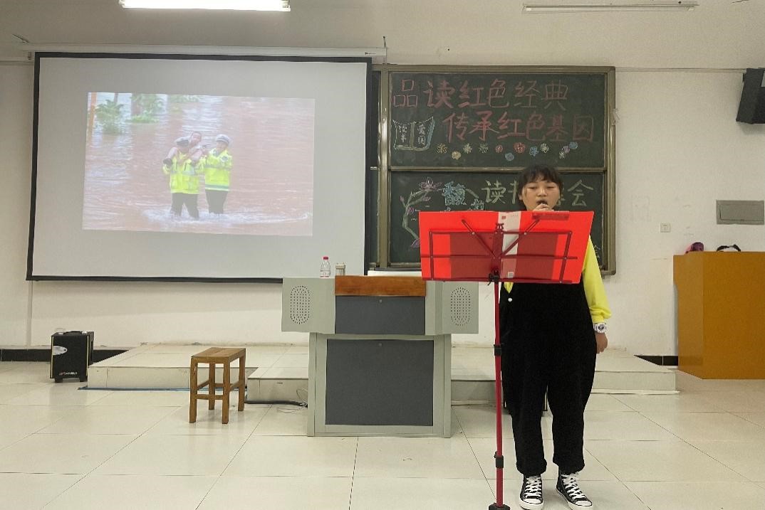 活动过程中大家热情高涨、精神饱满,用真挚、朴实的语言分享了自己心中的红色故事:《我的祖国》、《怀念王若飞》、《中华颂》、《中国少年》......大家用真挚的感情抒发着自己对祖国的热爱、对革命先烈的敬仰。革命先烈们的精神突破了厚重的历史时空,深深的感染了在场的每一位青年学子。王红老师分享了红色经典文段,并对本次读书分享活动进行点评。最后评委老师为优秀代表颁发荣誉证书。
