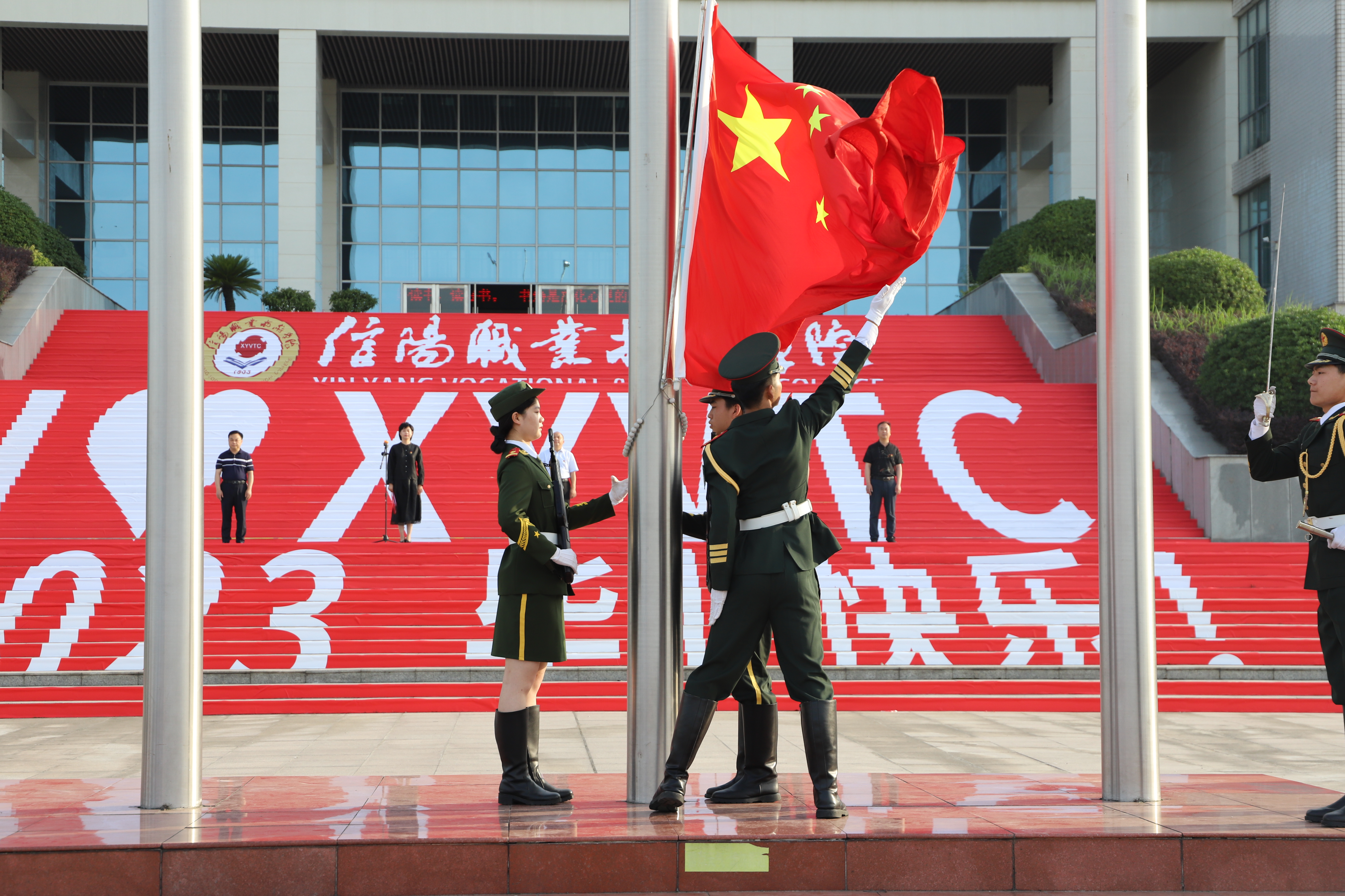 出席本次升旗仪式的有买球体育官方网站党委委员、工会主席黄新、校团委组宣部部长杨涵程、买球体育官方网站党总支书记王虹、院长陶玲、党总支副书记焦红见、副院长张永海及买球体育官方网站在校的全体师生。